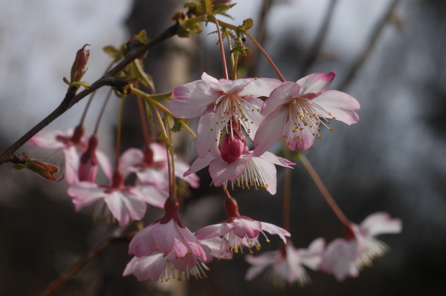 本種為長江下游開花較早的中國原生種迎春櫻選育而來,花期與櫻桃相近,比染井吉野早。抗性強,花密,不同植株花有淡紫紅、粉紅、白色多種顏色,嫩葉顏色有綠色、紅褐色,樹型舒展,小枝細(xì)長,長成后略下垂。花朵小巧細(xì)密,美麗可愛??梢赃M行有目的的園藝栽培選育。